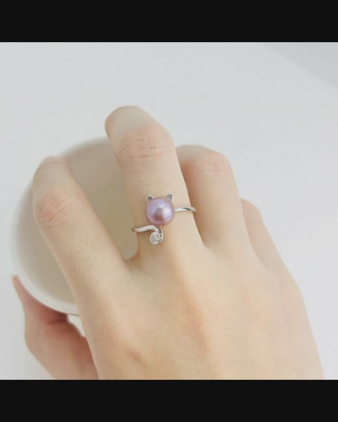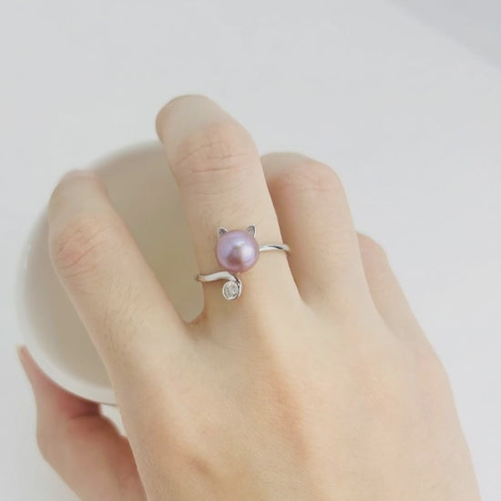 Adorable Freshwater Pearls (7-8mm) Cat Ring